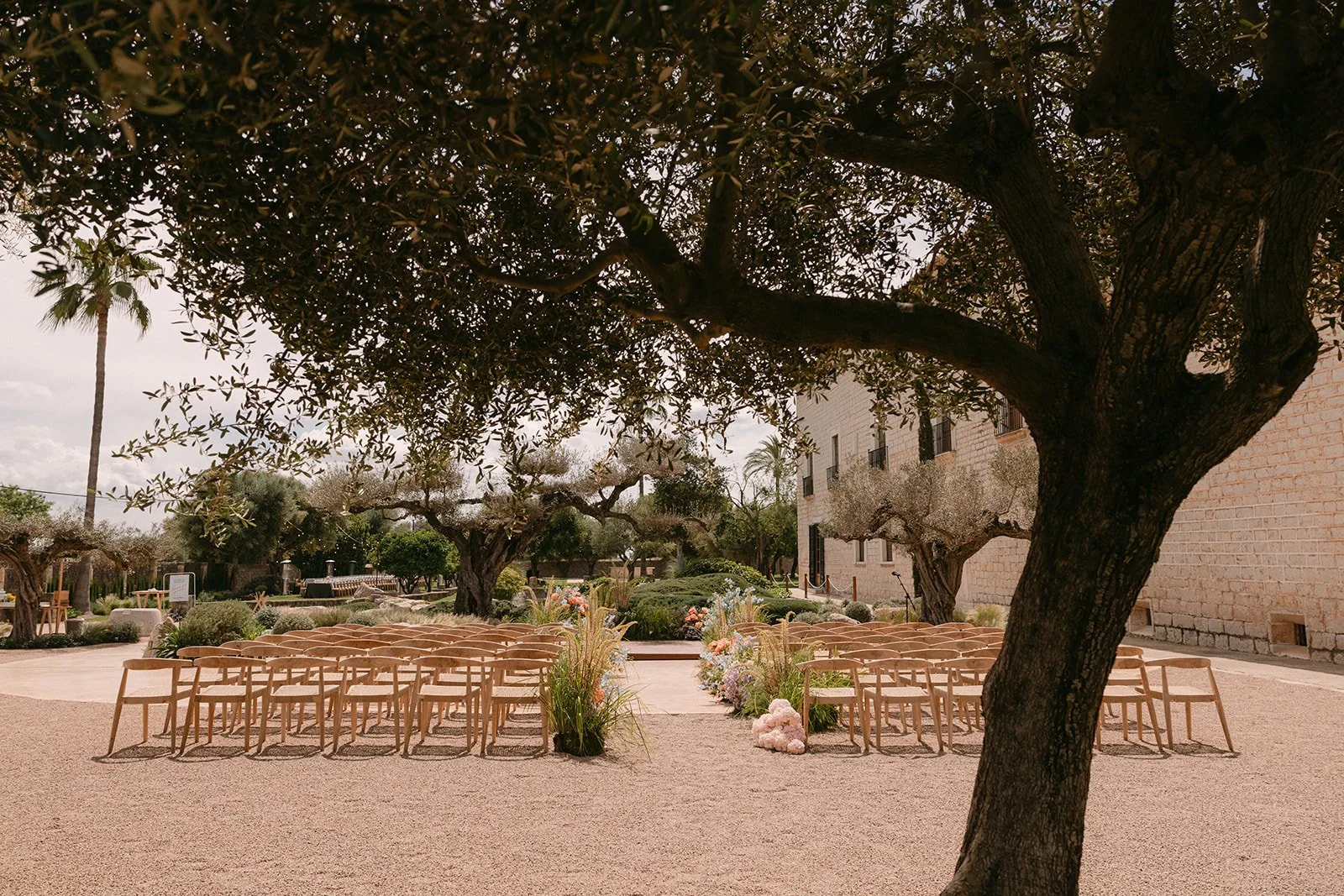 1) There’s no shortage of picture-perfect venues here, whatever your style may be: We wanted the rustic charm of a finca—a Spanish countryside estate—and the stars aligned for us to book Finca Morneta. But traditional fincas aren’t for everyone. For couples seeking finca-inspired charm with the comforts of an intimate boutique hotel, the newly opened Son Xotano and Finca Serena are where the dancefloor will be just steps away from your room. Design enthusiasts will adore Cap Rocat, an ancient fortress by the sea with a stylish pool. Nature lovers can exchange vows beneath a lush green canopy at Jardines de Alfabia.